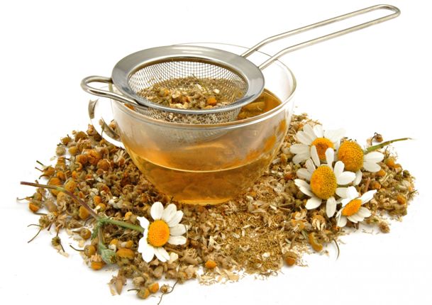 A tea elkészítése. Egy maroknyi szárított kamillavirágot szórjunk kb. egy liter forrásban lévő vízbe, majd hagyjuk állni, amíg kihűl.